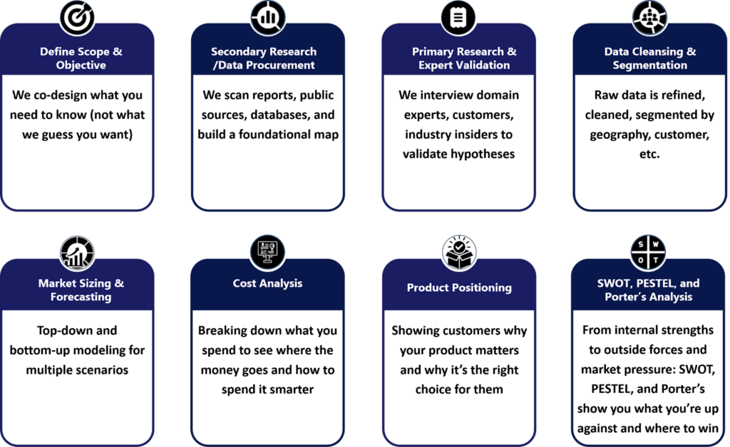 At UnivDatos, we don’t stop at collecting information. We synthesize insights into clear, compelling narratives that decision-makers can act on. Our work is built on rigorous research, structured frameworks, and precise communication—ensuring intelligence drives outcomes, not confusion.
